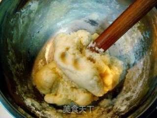 3. 包馅:将小剂子擀成圆饼状,放入适量的豆沙馅,然后像包包子一样,将面皮包裹住馅料,封口捏紧。