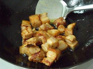 3. 加调料:将调好的酱料倒入锅中,翻炒均匀,让肉块充分吸收调料的味道。